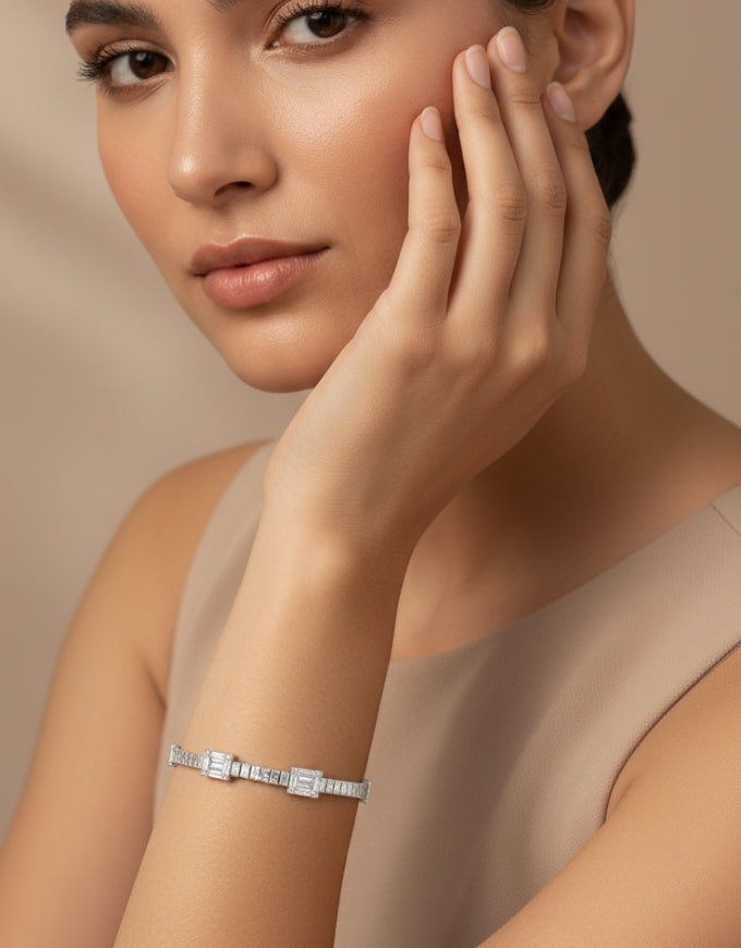 Indulge in the allure of the Solitaire Signature Bracelet a refined tennis style piece that brings sophistication and sparkle to your everyday.