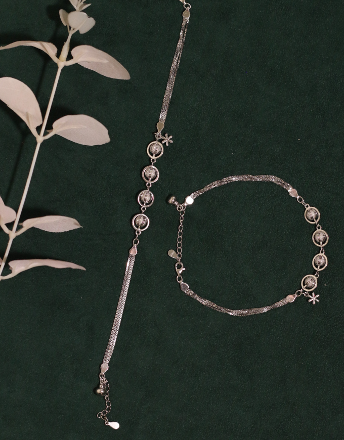 Adorn your feet with the graceful rhythm of the Bead Charm Anklet. Its delicate beads and polished charms catch the light with every move, celebrating femininity and elegance.