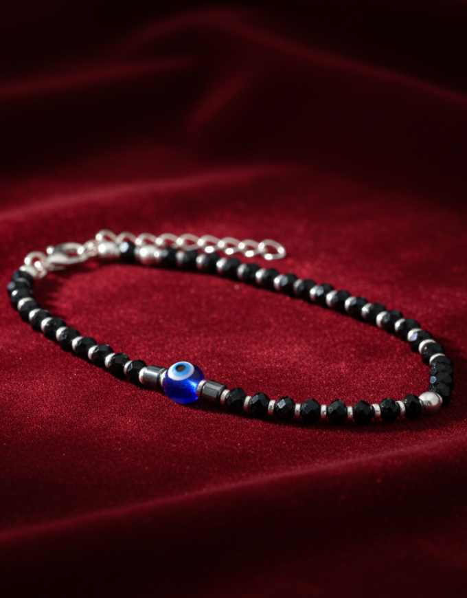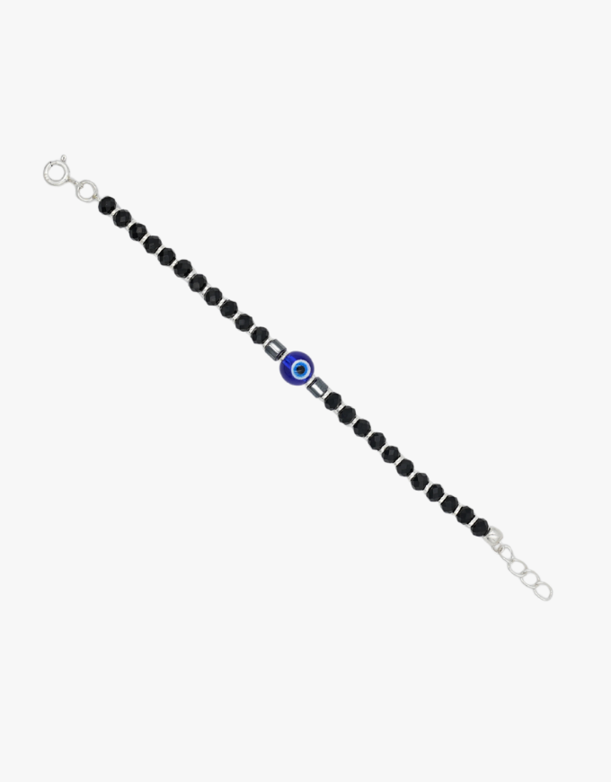 Stylish and protective, this black bead bracelet with evil eye adds charm and positivity to kids’ outfits.