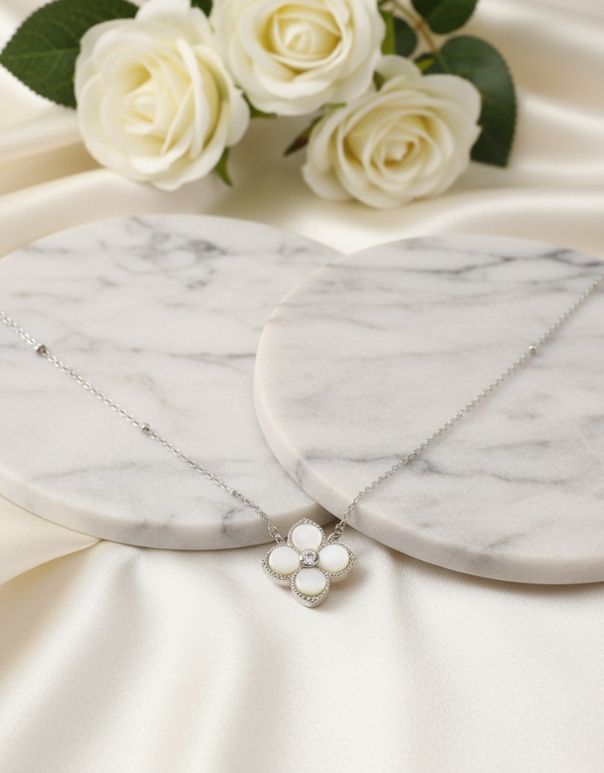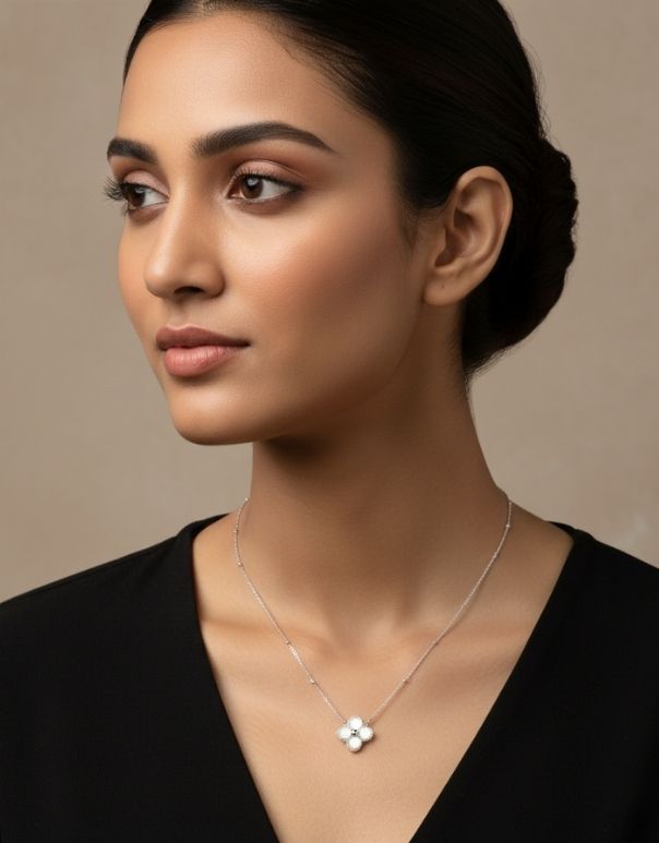 Elegant silver pendant featuring a delicate flower motif with a matching link chain. Ideal for daily wear, festive occasions, or gifting.