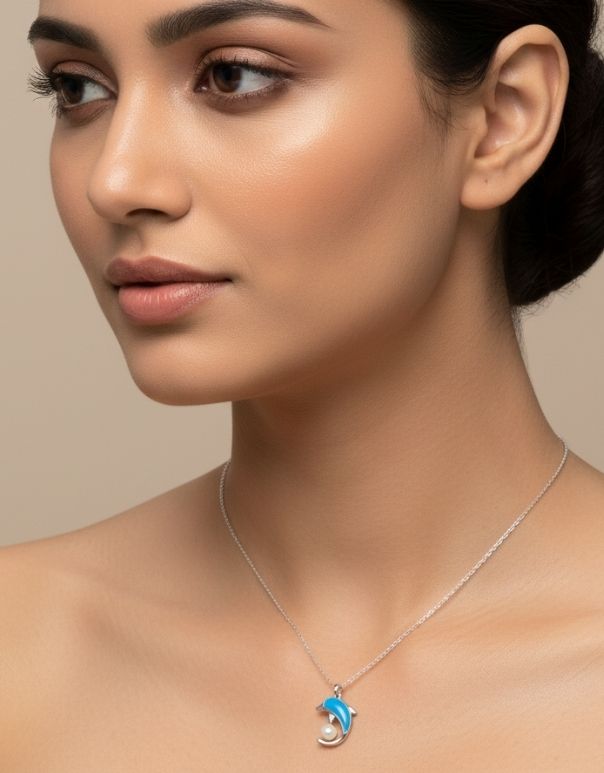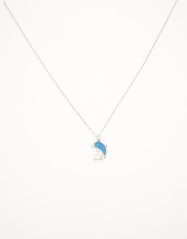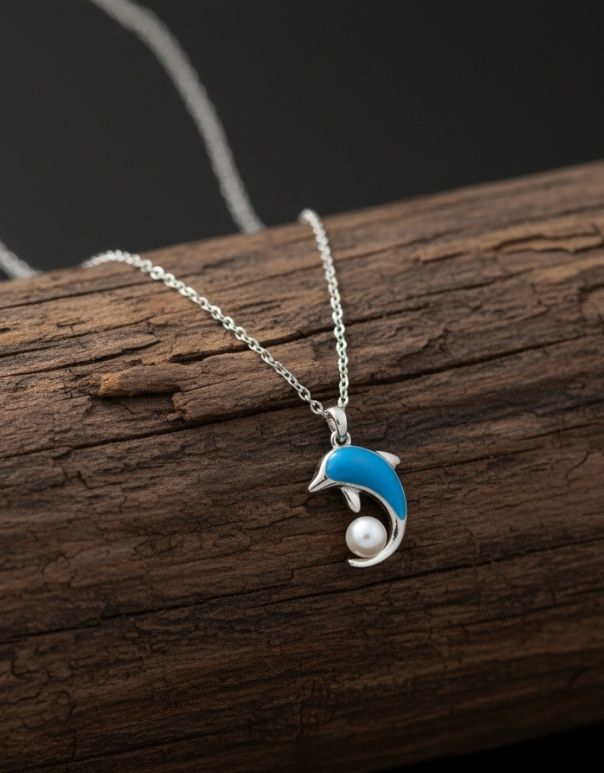 Playful silver dolphin pendant perfect for adding charm and whimsy to any outfit. Ideal for casual wear or gifting ocean lovers.