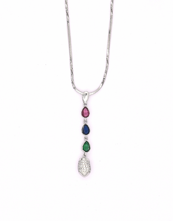 Make a statement with this dazzling scarlet pendant. Featuring a rhombus studded design and a teardrop motif with a colored stone, this silver pendant brings elegance and sparkle to your everyday or festive look.
