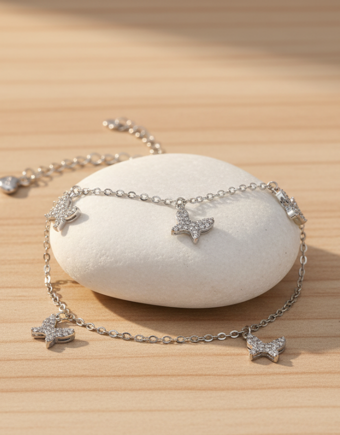 Perfect for everyday elegance, this bracelet features delicate butterfly charms that flutter with your movements, soft, feminine, and endlessly wearable.