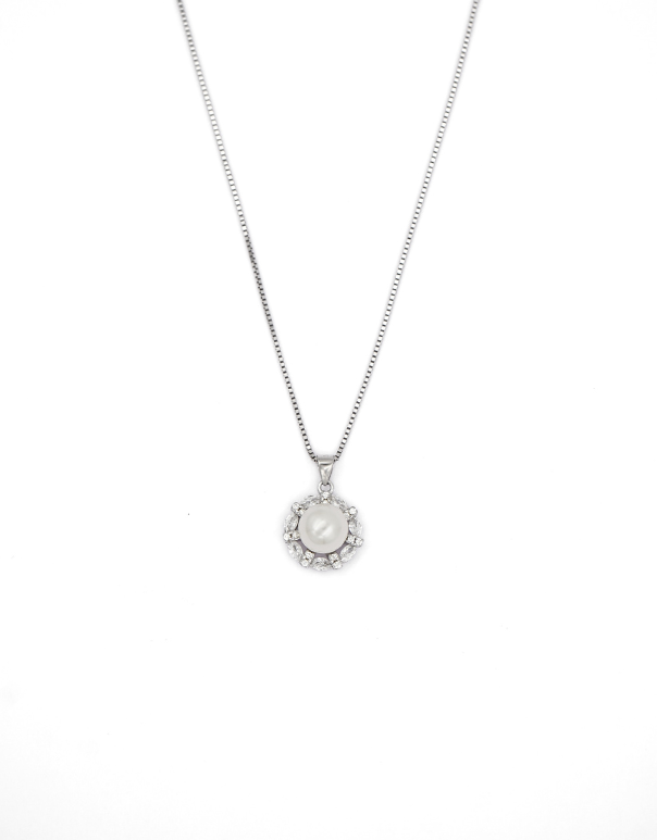 Fleur Pendant With Link Chain Just like tea on a rainy day or those small moments with YOUR special one! This is the exact inspiration behind this Silver Tear circle Pearl Pendant. A symbol of your simple pleasures..