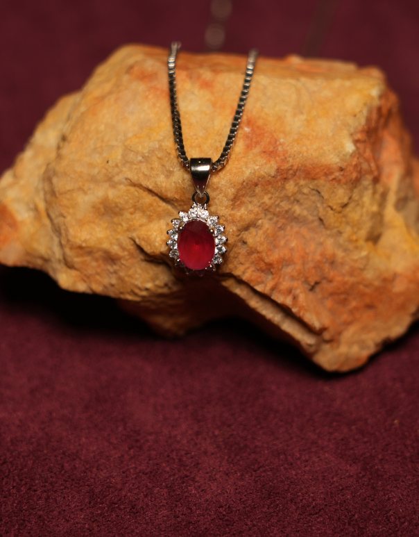Crafted from 925 sterling silver, this red oval solitaire pendant radiates warmth and elegance. Its soft, blush toned hue adds a touch of romance and sophistication, making it perfect for both casual and formal wear.