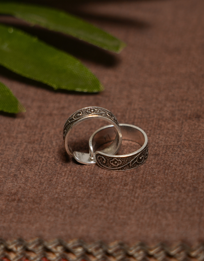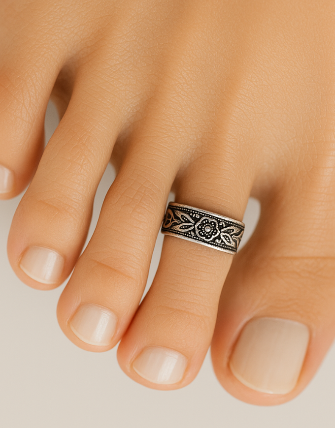 Walk with poise and sway with confidence this Oxidised Silver Grace Toe Ring celebrates your inner boss babe vibes. A bold accessory that combines grace with strength.