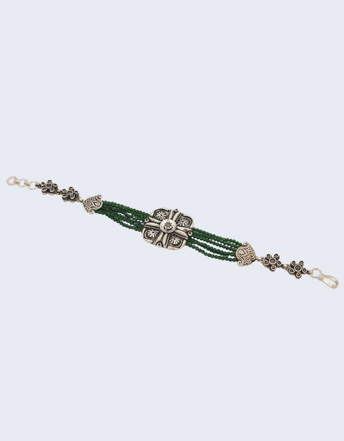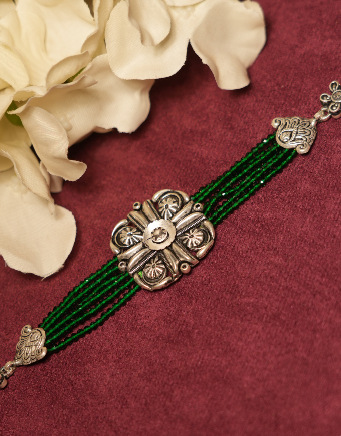 When your accessories need to match your vibe confident, vibrant, unique this oxidised green emerald bracelet is your go-to. More than jewellery, it’s an attitude.