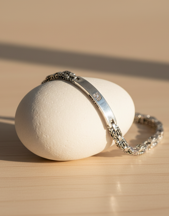 Crafted from premium silver with a sleek plating, this bracelet combines sophistication with style. The personalised initial adds a versatile and modern touch for men.