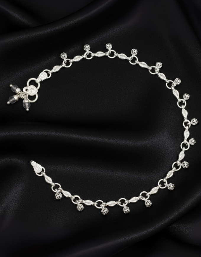 Inspired by the beauty of the stars, the Silver Celestial Loop Anklet embodies elegance and cosmic charm. A dazzling piece for dreamers and believers.