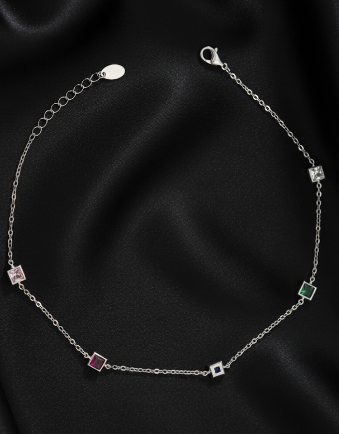 A joyful celebration of design, this anklet is adorned with multiple charms for a playful and stylish vibe. Perfect for women who love a little extra sparkle.