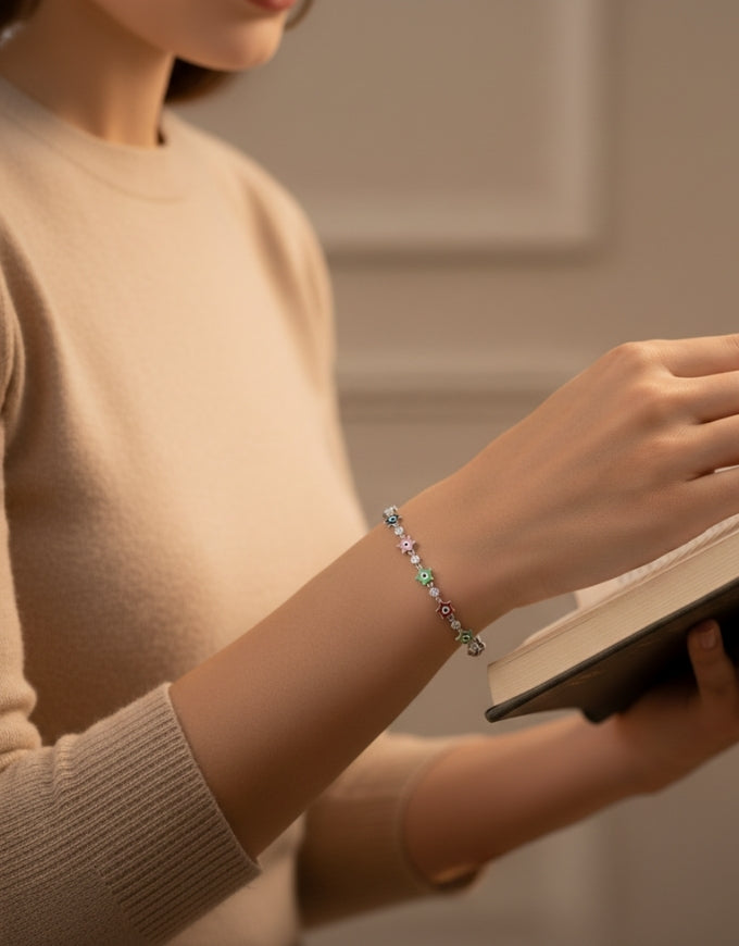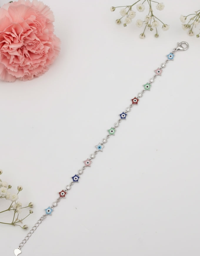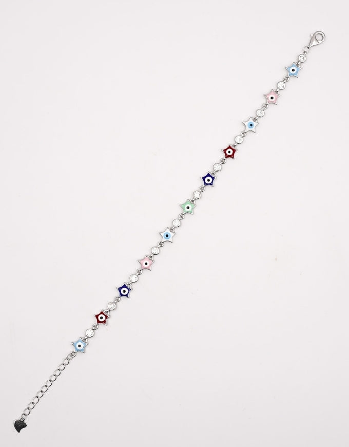 Crafted in 925 sterling silver, the Starlit Dreams Charm Bracelet features colorful star charms and crystal accents. A fun, youthful piece that adds playfulness to any style.