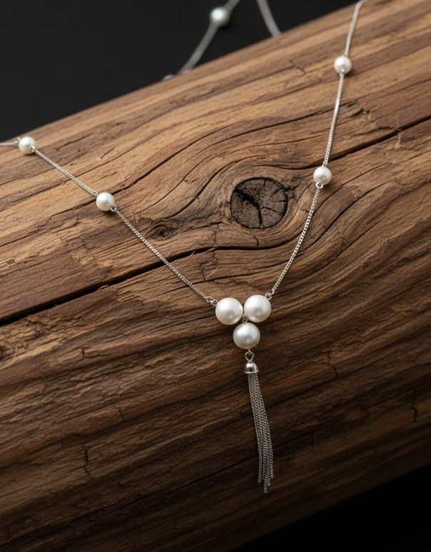 Classic pearl stud Chain Necklace featuring triple pearls. Simple, elegant, and ideal for daily wear or gifting loved ones.